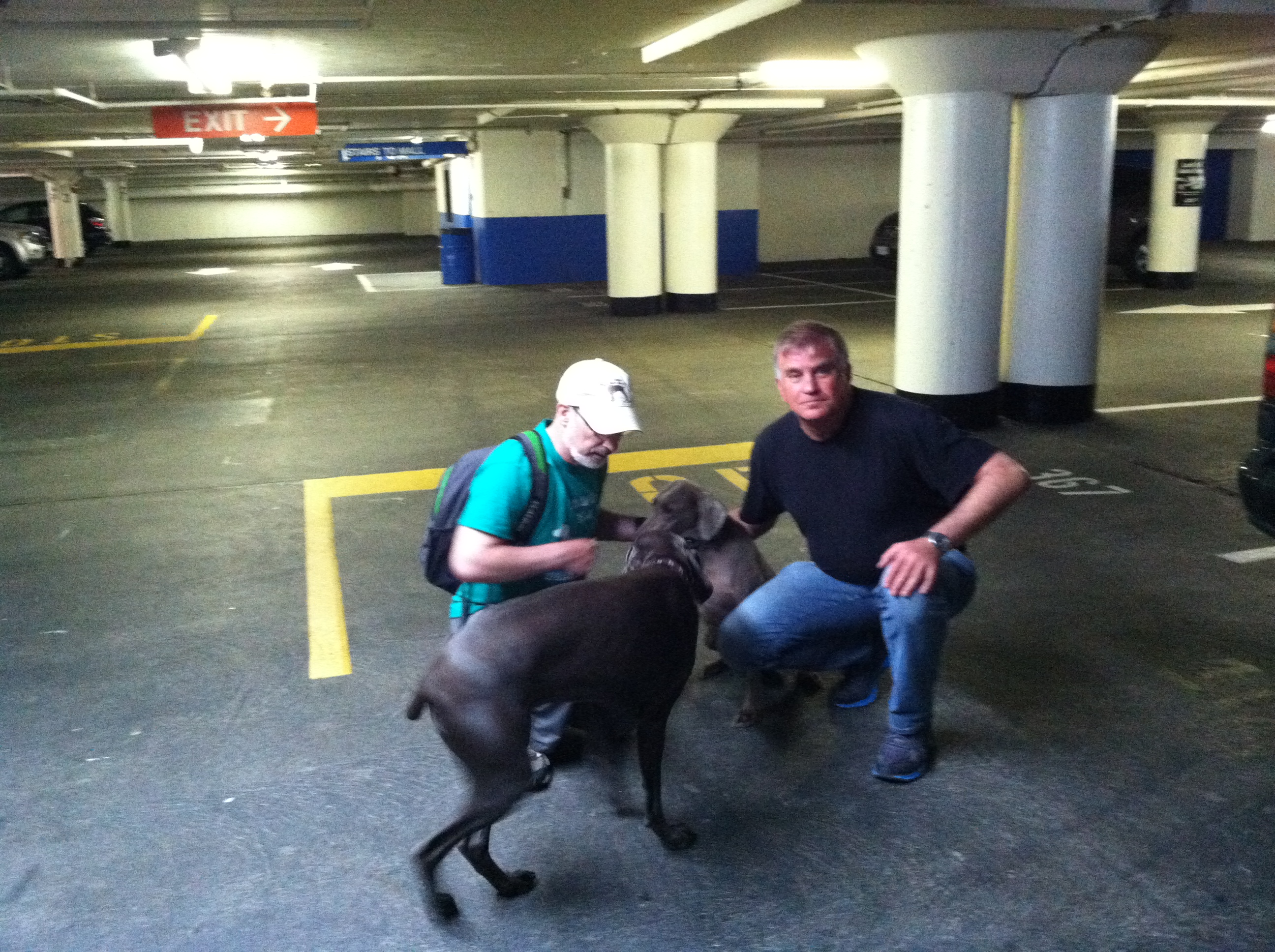 Then down to the basement where Molly and Brit are waiting for a formal introduction to me. More photographs. Instant friends, but Molly is as badly behaved as my baby in SA. Both Molly and Brit are “Rescue Dogs”. This means that they were abandoned and in a pound before Sam found them. It amazes me that people can abandon beautiful animals like this.
