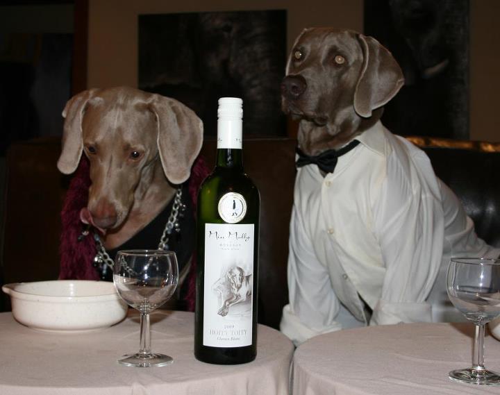 We are in great demand from the outset. To cap it all, Sam, his wife Ann and their two Weimeraners, Molly and Brit have come in especially for the function. I have to have photo’s taken with Sam and a bottle of the wine which I have signed to Molly with love! I am presented with Miss Molly chocolates that they have had specially made and packaged for the event and an article on our wines and Miss Molly in the BC Law Journal. Sam is a lawyer.