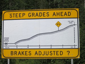 8% downhill on the Cassiar followed by sharp gravel bends. Brown marks everywhere due to Harley riders shitting themselves. . Bridge has metal grate floor just to sort out remaining piles clad in now wet leathers. BMW GS heaven!