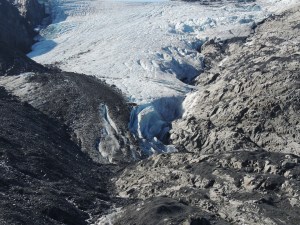 We are able to get within meters of the base of the glacier and it is very dirty with fresh water seeping out of every bit of it.