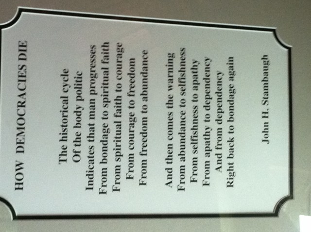 I compare this with what we are doing as humans. we continue to support the weak and stupid. This is going to backfire on us. Ultimately these weak and stupid end up with the vote and continue to back the Mugabe’s and Malema’s of the world. I saw the following words on the wall in a hamburger joint , The Alaskan Road Runner, in Anchorage.