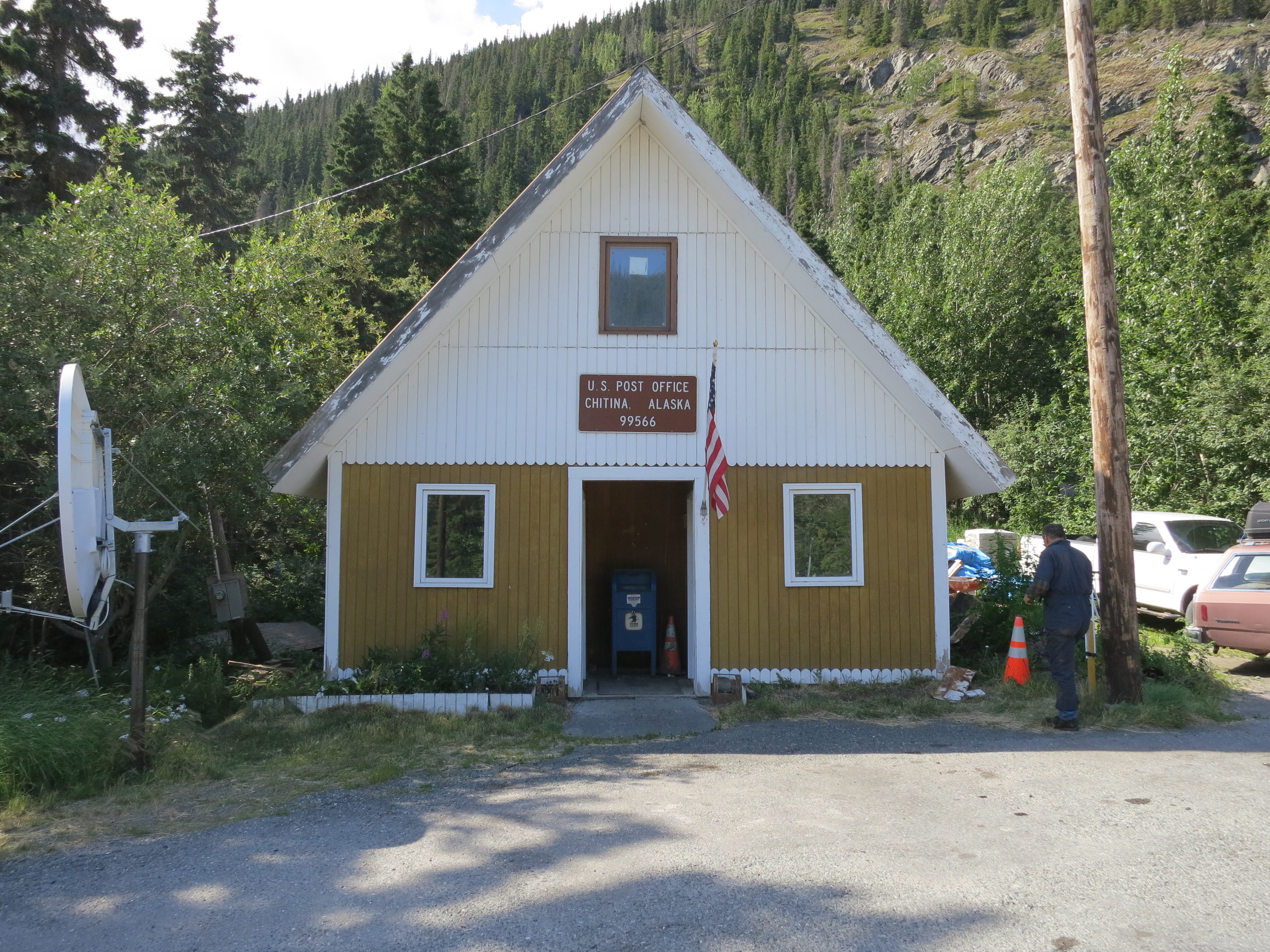 On the way out of Chitina I stop at the post office and post the obligatory post cards to my now favourite grandchildren. I gather their mother is sulking because she has not got any postcards, so I address them c/o her to make her feel more wanted.